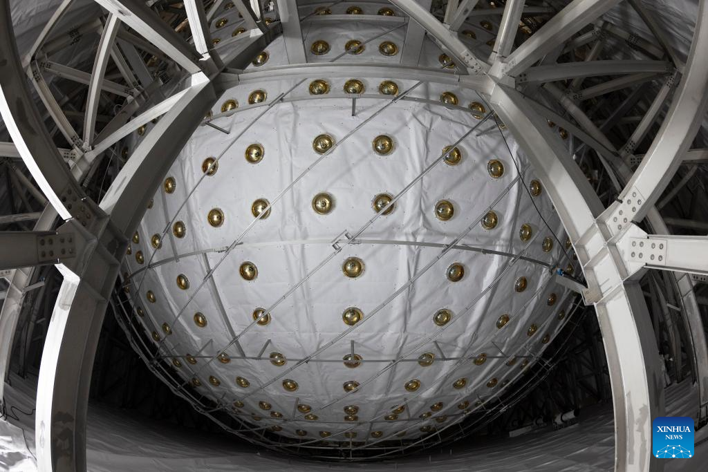 This photo taken on Dec. 17, 2024 shows the central detector of the Jiangmen Underground Neutrino Observatory (JUNO) in Jiangmen, south China's Guangdong Province. (Xinhua/Jin Liwang)