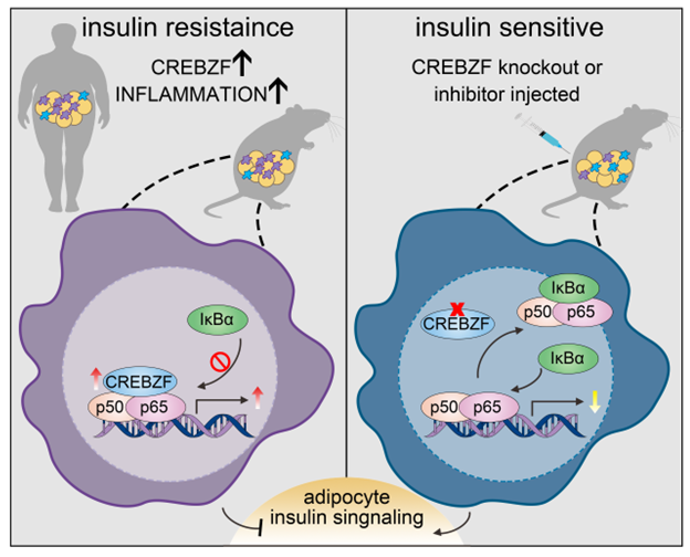 Obesity-associated chronic inflammation in adipose tissue is a critical factor in triggering insulin resistance. CREBZF plays key roles in regulating nonalcoholic fatty liver disease (NAFLD), liver fibrosis, nonalcoholic steatohepatitis (NASH) and liver tissue regeneration caused by liver injury or resection. Although it has emerged as a critical metabolic regulator, CREBZF's role in immune cells and chronic inflammation remains unknown.