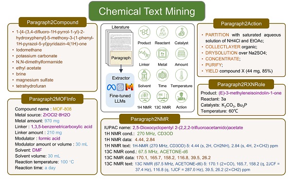 Chemical literature contains a wealth of data, and extracting key chemical information through text mining techniques to build extensive databases can provide experimental chemists with detailed physical and chemical properties and synthesis routes. It can also offer computational chemists rich data and insights for model building and prediction. However, due to the complexity of chemical language and the diversity of writing styles, extracting standardized and structured data from chemical literature is a highly challenging task.