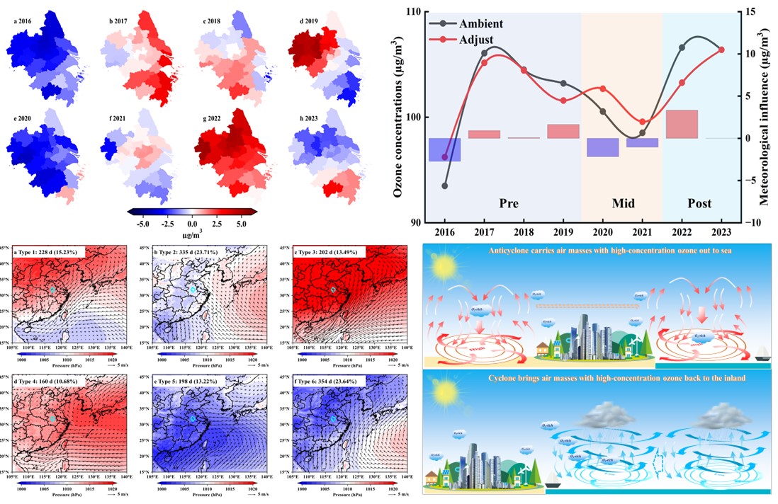 Figure: Interannual variation, synoptic weather patterns classification and multi-scale transport processes of ozone in the Yangtze River Delta. (Image by HU Feng)