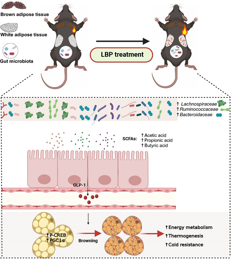 Lycium barbarum polysaccharides enhance thermogenesis and energy metabolism by regulating gut microbiota, thereby improving tolerance to cold stress. (Image by CHEN Chang's group)