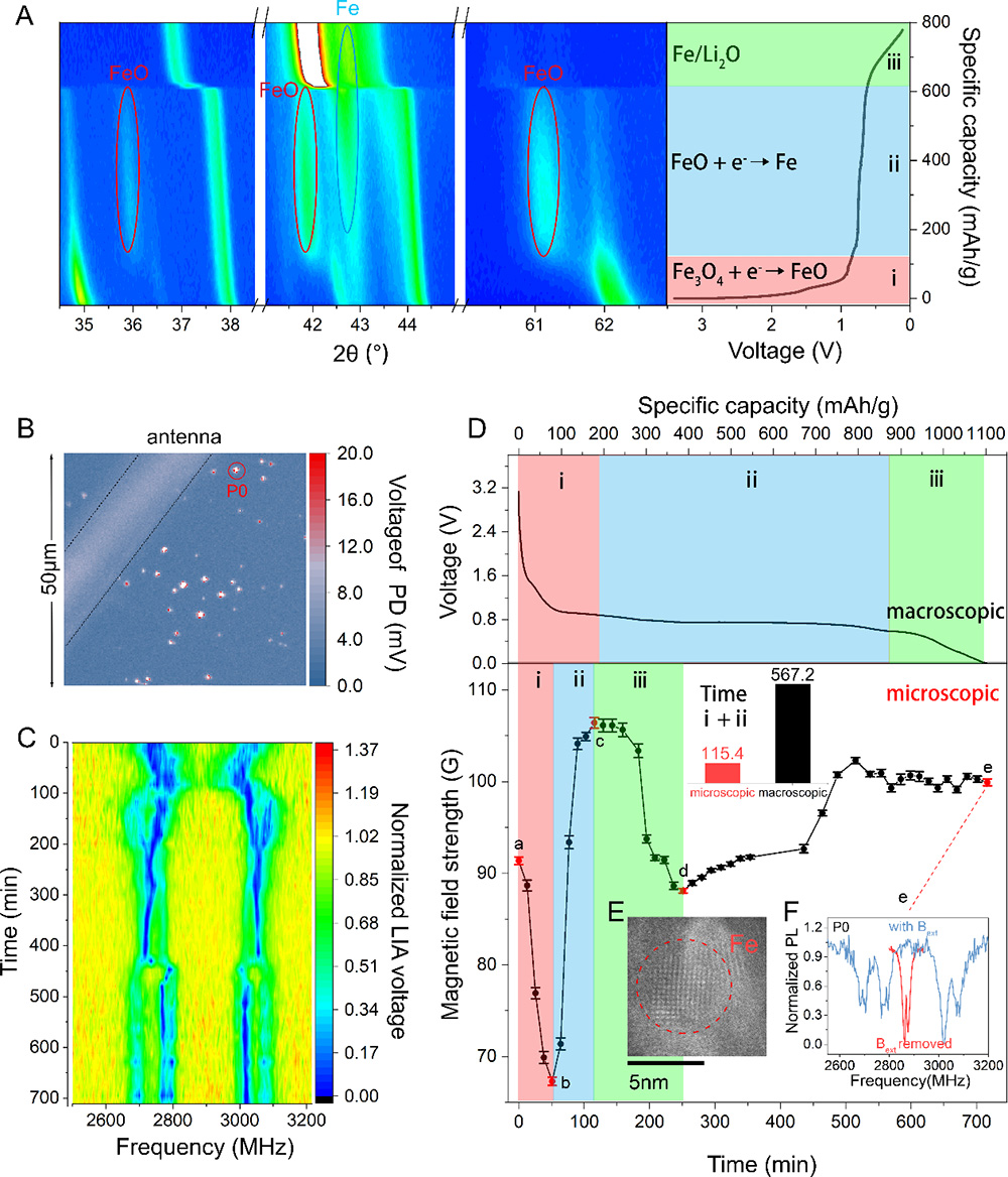 Their findings revealed non-uniform phase transformations from Fe3O4 to FeO and then to Fe during discharge, with significant microscopic kinetic differences across regions.