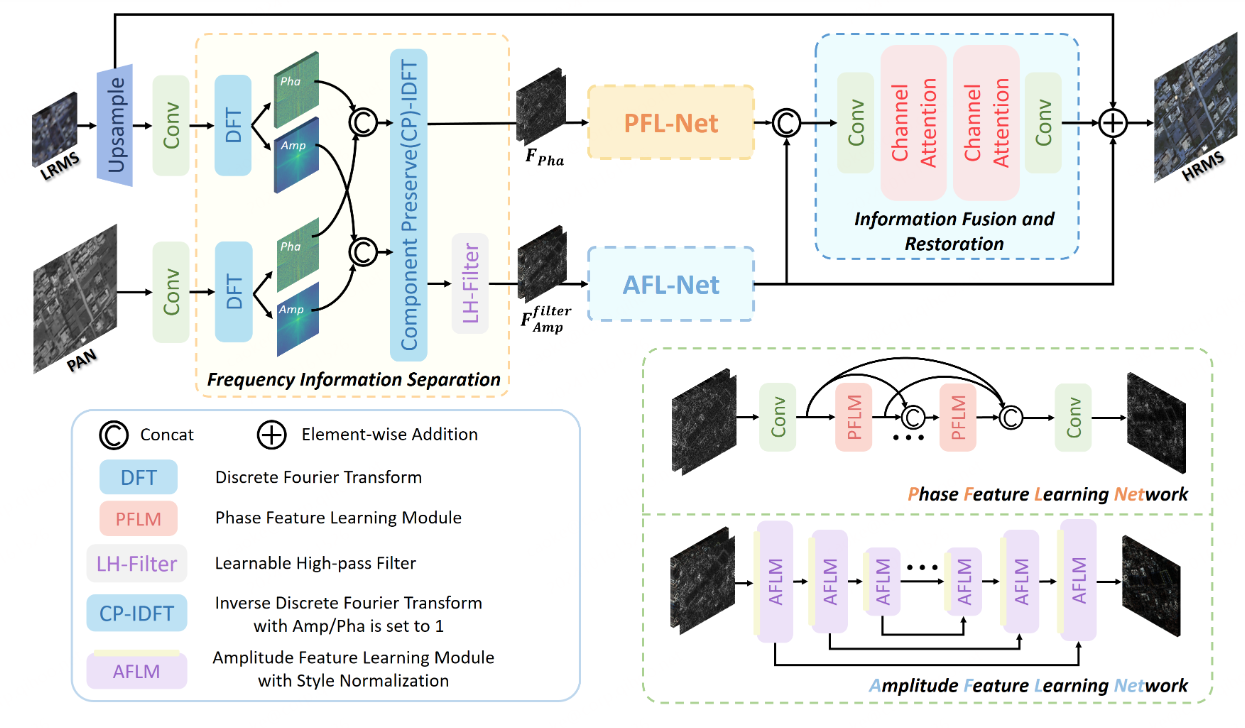 Pan-sharpening, a critical technology in remote sensing image processing, combines high-resolution panchromatic images with low-resolution multispectral images to produce detailed high-resolution multispectral images. This technology is vital for enhancing the balance between spatial and spectral resolution in optical remote sensing satellites.