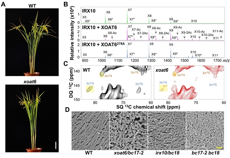 A group of Chinese scientists have recently reported that XYLAN O-ACETYLTRANSFERASE 6 (XOAT6) enhances xylan polymerization and folding by forming a complex with IRREGULAR XYLEM10 (IRX10), thus regulating wall strength and recalcitrance in rice.