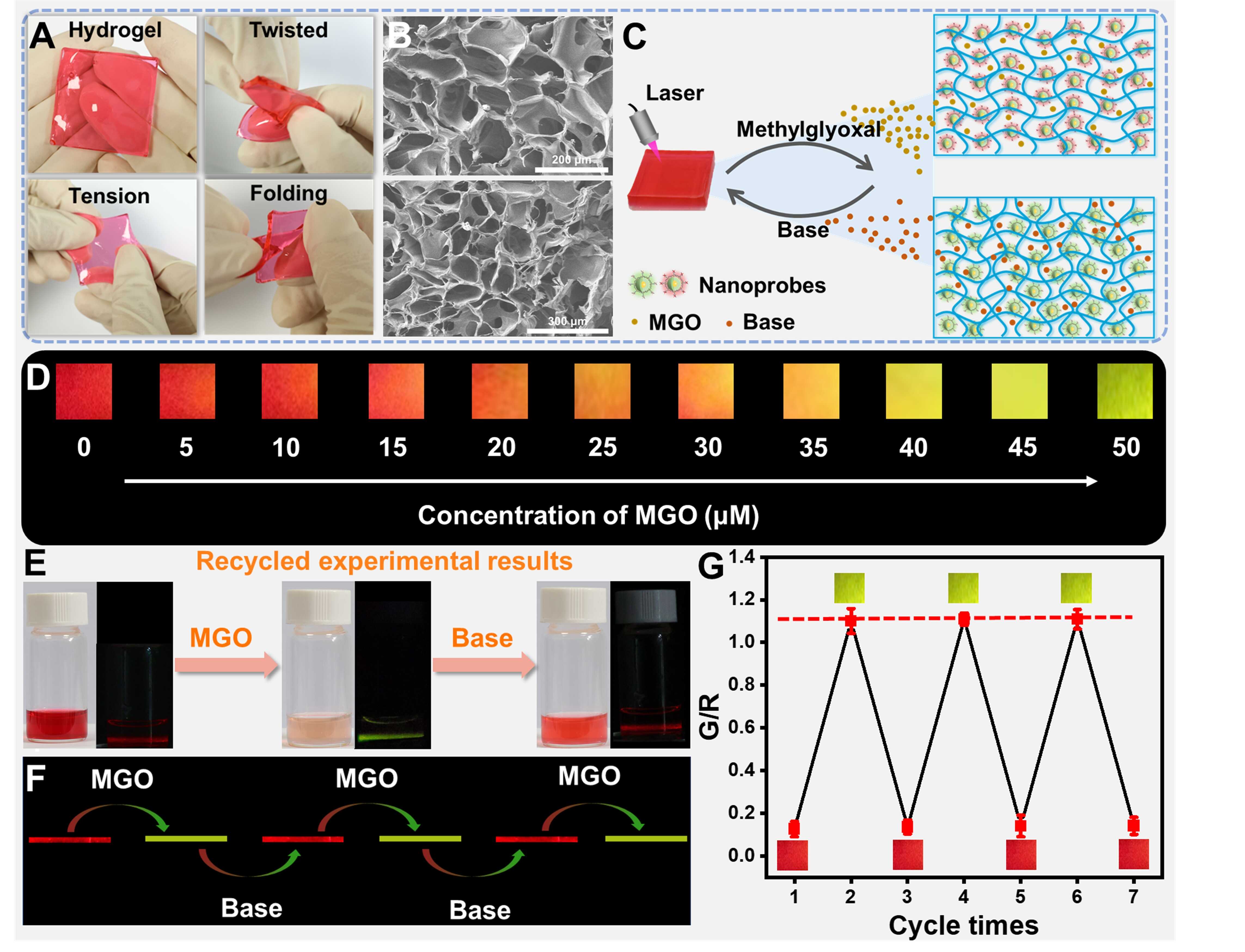 The hydrogel sensor developed by the research team is based on a probe made from UCNPs and modified eosin B (mEB), operating through a fluorescence resonance energy transfer (FRET) mechanism. When methylglyoxal interacts with mEB, the upconversion fluorescence shifts from red to green, allowing for precise detection.