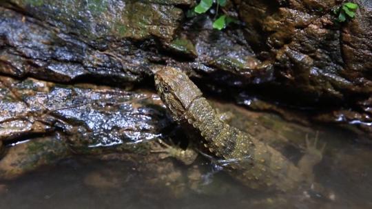 A Chinese crocodile lizard in water. /Screenshot from the video