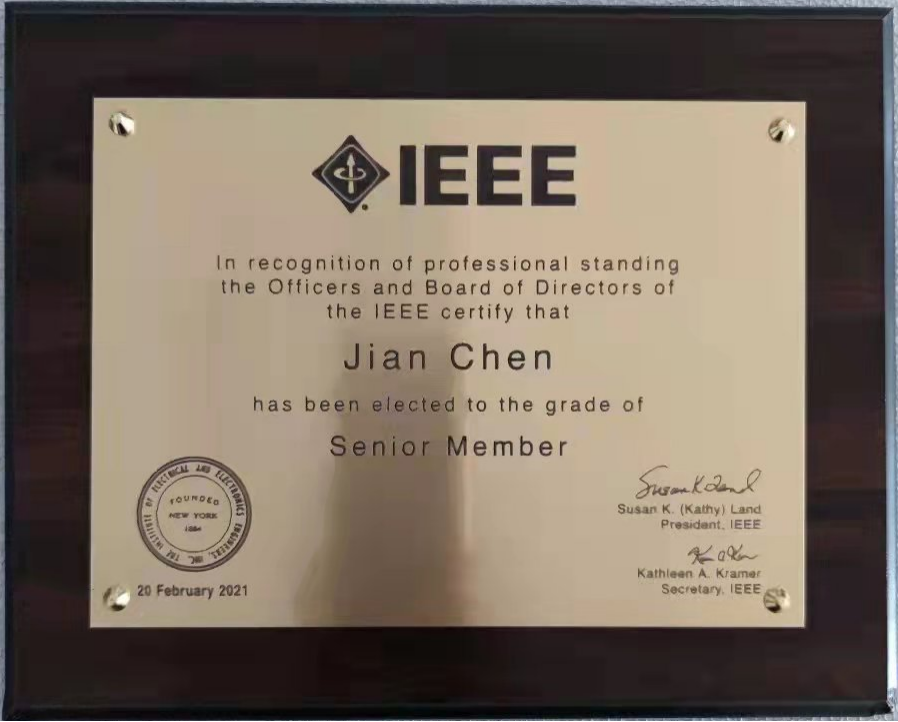 IEEE recognizes Dr. CHEN as a Senior Member in good standing through December 2021, denoting a personal and professional commitment to the advancement of technology.