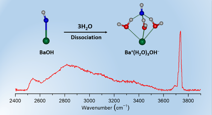 Experimental IR-VUV spectra and identified structures of hydrated BaOH clusters. (Image by YAN Wenhui)