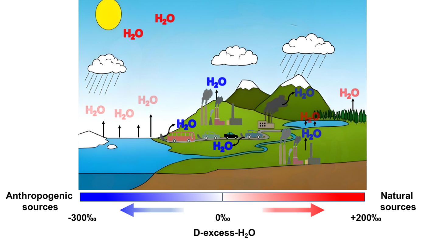 Schematic diagram showing the composition of water vapor d-excessv from anthropogenic sources and natural sources. (Image by IEECAS)