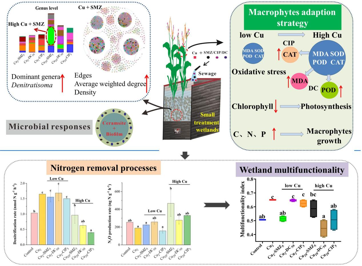 Over an 84-day period, the research team systematically examined the combined impacts of copper (Cu) and three common antibiotics—sulfamethoxazole (SMZ), doxycycline (DC) and ciprofloxacin (CIP)—on wetland ecosystems.