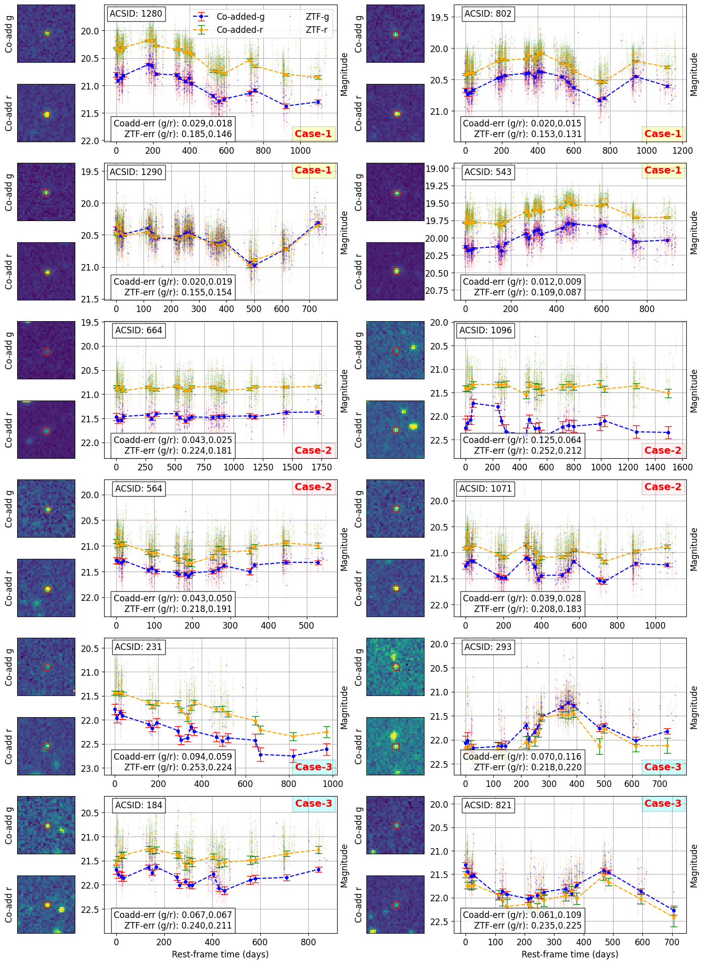 Applying the method to the ZTF observations in the extended groth strip (EGS) field, the researchers constructed high-quality light curves for 73 AGNs. Compared with traditional ZTF data products, the advantages of the new approach are evident in several aspects, it substantially enhances photometric precision for strongly variable AGNs while retaining the original long-term trends; it suppresses noise contamination and clearly reveals variability for objects with brightness near or below the single-exposure detection threshold, extending variability studies to significantly fainter AGN populations.