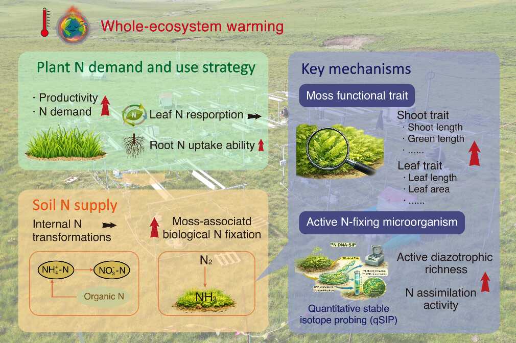 Notably, the warming-induced enhancement in moss-associated nitrogen fixation accounted for approximately 48% of the additional nitrogen required by vegetation, underscoring the pivotal role of moss-associated nitrogen fixation in supporting plant growth under warming.