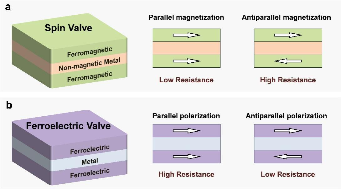 Spin valves, which modulate resistance by controlling spin orientations in ferromagnetic layers, have been instrumental in advancing spintronic technologies such as magnetic memory and sensors. Inspired by the conceptual analogy between ferroelectricity and ferromagnetism, the researchers led by Prof. CHEN Chunlin from IMR designed a structurally analogous system in which resistance is tuned through polarization switching in neighboring ferroelectric layers.