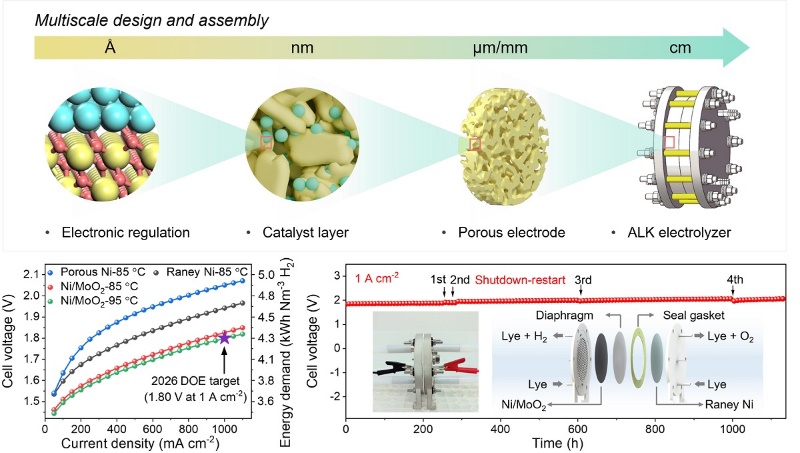 "This atomic-to-macro multiscale electrode design strategy overcomes the long-standing dilemma in high-current-density ALKWE caused by the activity-stability trade-off, providing an important advancement for sustainable hydrogen production," said Prof. DENG Dehui, a corresponding author of the study.