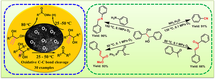 Aerobic oxidative cleavage of 1,2-diols catalyzed by atomic-scale cobalt and its application in tandem reactions. (Image by WANG Lianyue)