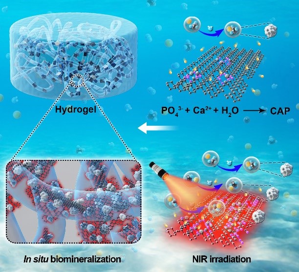 A research group led by Prof. YU Xuefeng from Shenzhen Institutes of Advanced Technology (SIAT) of the Chinese Academy of Sciences, in cooperation with Prof. SHAO Jundong from Shenzhen University (SZU), demonstrated photochemical activity of BP in the NIR light-controlled in situ biomineralization of BP incorporated hydrogel.