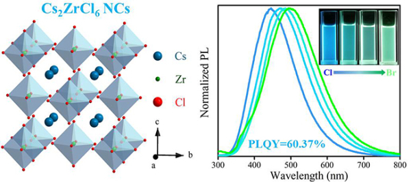 Lead-free perovskite Cs2ZrCl6 NCs with a PLQY up to 60.37% is synthesized (Image by LIU Siping and YANG Bin)