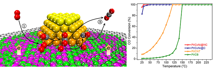 Graphene-isolated Pt from CoNi nanoparticles (Pt|CoNi) for efficiently catalytic CO oxidation (Image by HU Jingting)