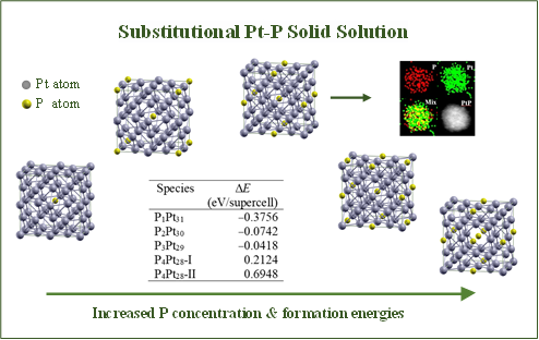 IPE researchers found that when using tri-n-octylphosphine (TOP) to phosphide the preformed Pt nanoparticles, P atoms are able to replace some of the Pt atoms located at their lattice sites, rather than entering the tetrahedral or octahedral interstitial positions of the face-centered Pt crystal, thus enabling the formation of a Pt-P substitutional solid solution.
