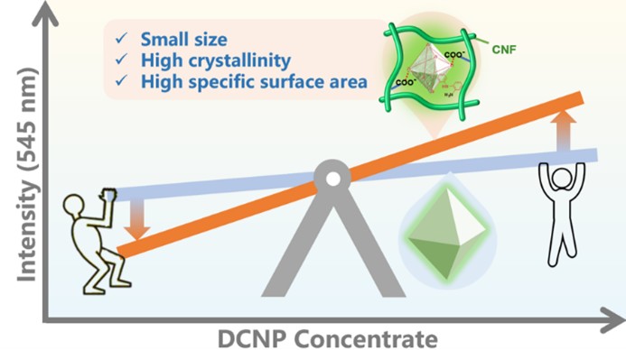 To address this challenge, a research team led by Prof. DOU Xincun at the Xinjiang Technical Institute of Physics and Chemistry of the Chinese Academy of Sciences, has proposed a sustainable strategy. They utilized carboxylated cellulose nanofibrils (CNFs) to induce the in-situ growth of smaller, self-assembled UiO-66 frameworks with abundant active sites, enabling the sensitive and selective detection of nerve agent analogs. This study was published in ACS Applied Nano Materials.