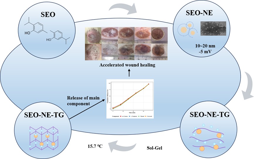 Schematic diagram of Schizonepeta annua essential oil nano-gel preparation and wound healing study. (Image by Prof. Haji Akber Aisa's lab)