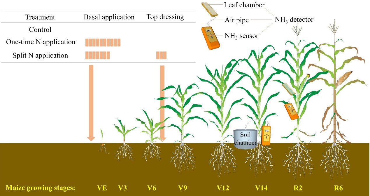 "High soil ammonium (NH4+) concentration and low soil moisture in one-time N application drove more soil NH3 loss, while large leaf area and high leaf apoplast NH4+ concentration boosted canopy emissions," said Dr. YANG Yang, a member of the team. "Our results highlight that split N application is a more sustainable choice with lower NH3 emissions and better maize productivity.”