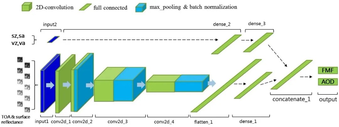 Fig. 1 The multi-input neural network architecture of MODIS FMF and AOD prediction (Image by AIR)