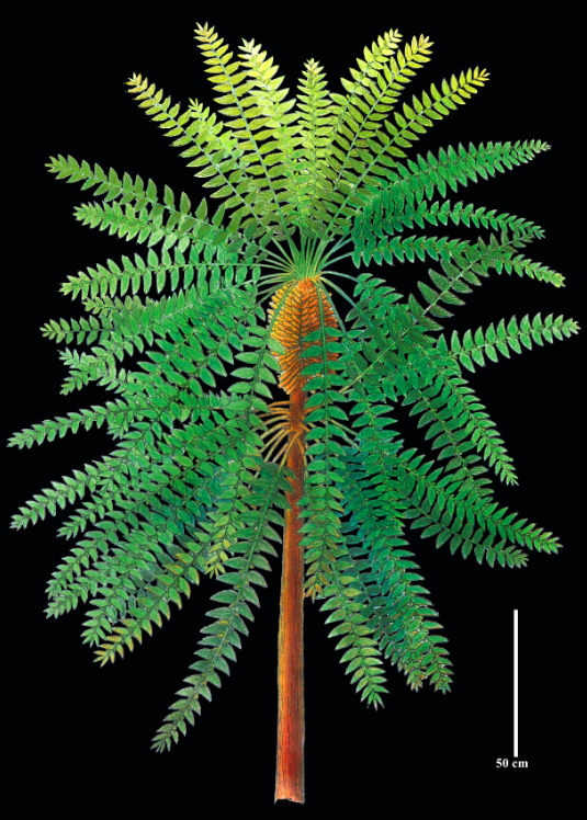 Fig. 3 Reconstruction of the crown of Paratingia wuhaia sp. nov. based on entire plant crown preserved in the Wuda volcanic ash horizon (Image by NIGPAS)