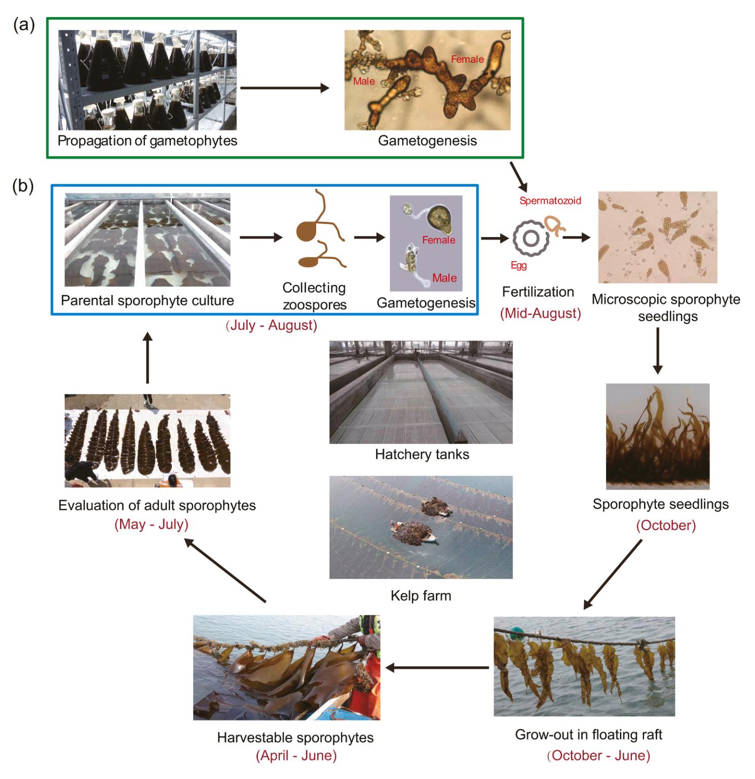 Full stage-covered Saccharina seedlings and cultivation production cycle in China. (Image by IOCAS)