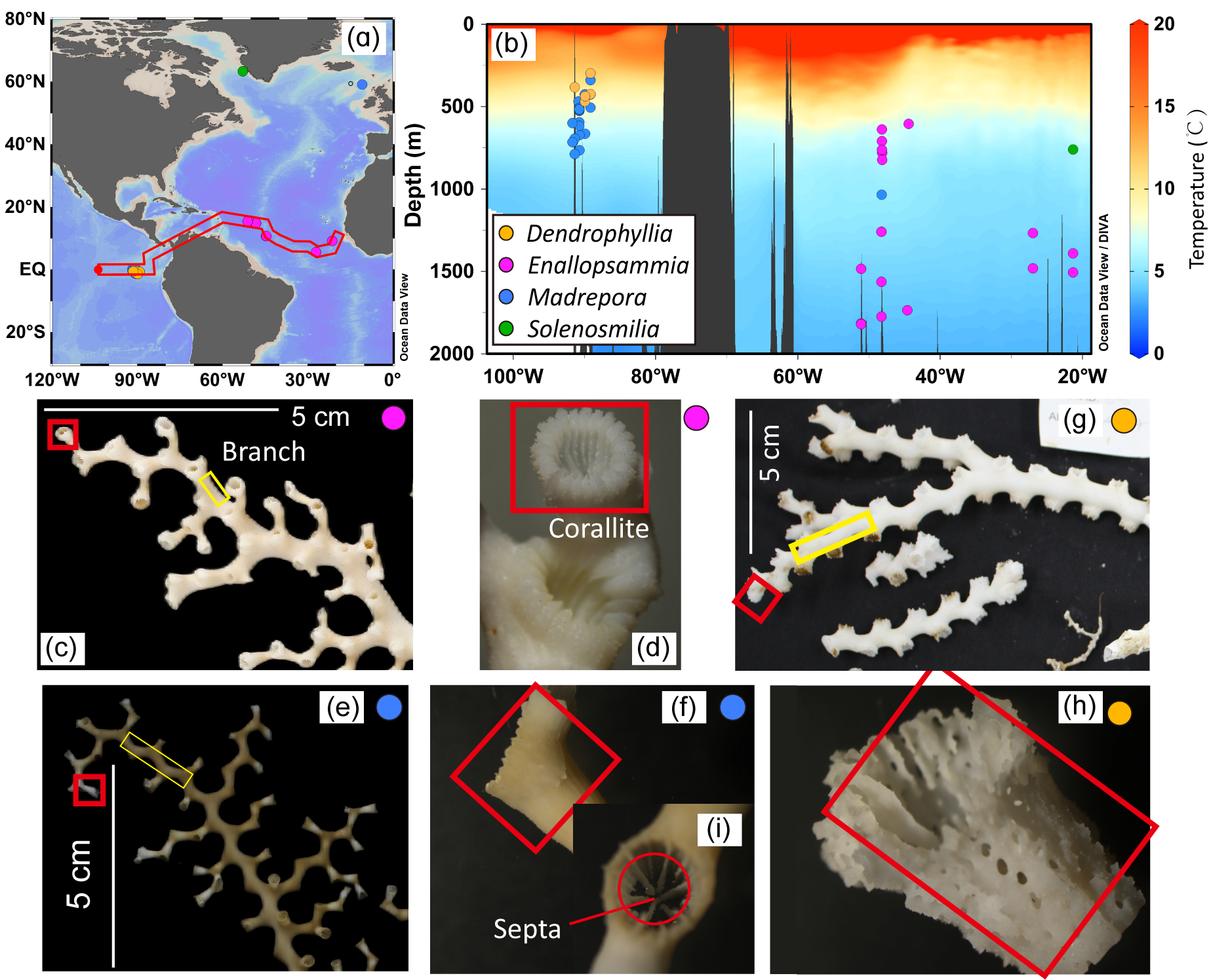 To isolate the drivers of this geochemical variability, the research team conducted a systematic analysis of 60 modern branching cold-water coral specimens. These specimens were collected from the North Atlantic, Equatorial Atlantic, and Eastern Equatorial Pacific.