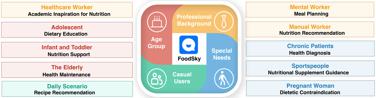 The potential applications of the proposed food-oriented LLM FoodSky to different populations in different scenarios. (Image by MIN Weiqing's Group)