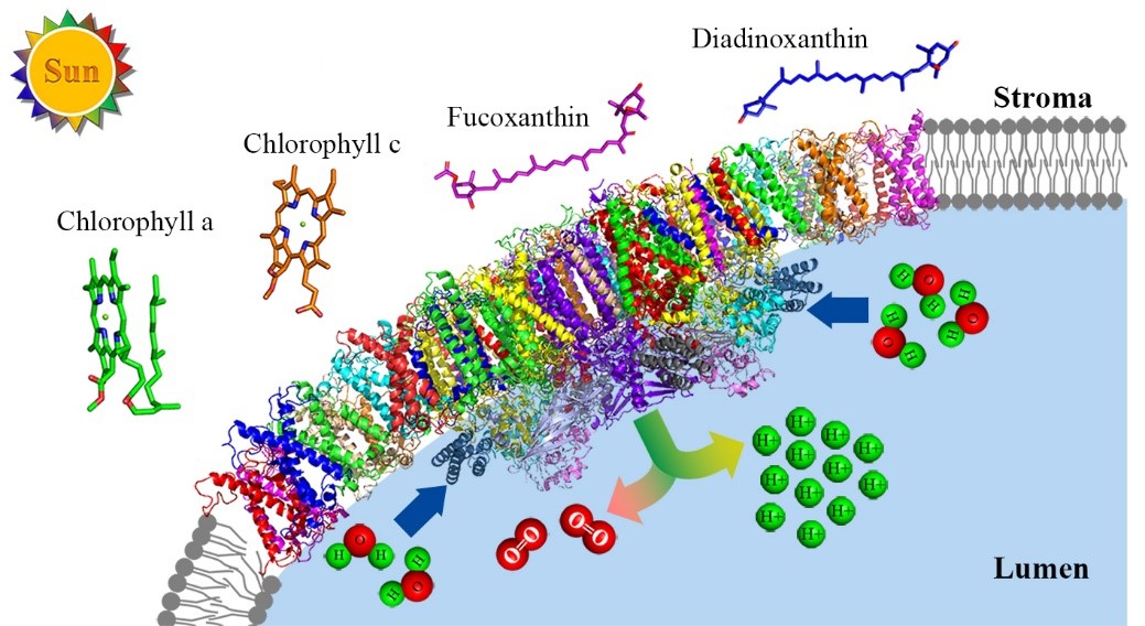 Fig.1. Model of a diatom PSII-FCPII supercomplex embedded in the thylakoid membrane (Image by IBCAS)