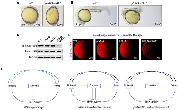 Fig. 2. The pinhead and admp genes function together to support the robustness of embryonic patterning (Image by WANG Qiang's group)