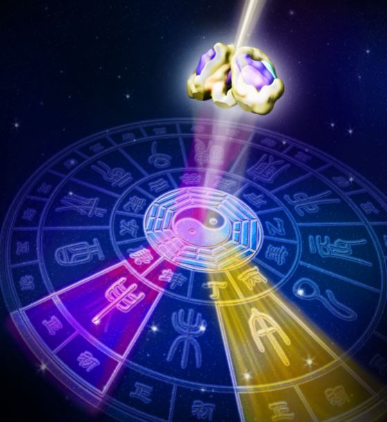 This image depicts SCN as a prism to transform the sun light into the color spectrum on the ancient Chinese sundial (日晷). This is a metaphor for the function of SCN and different circadian phases of SCN neurons. (Image by CEBSIT)