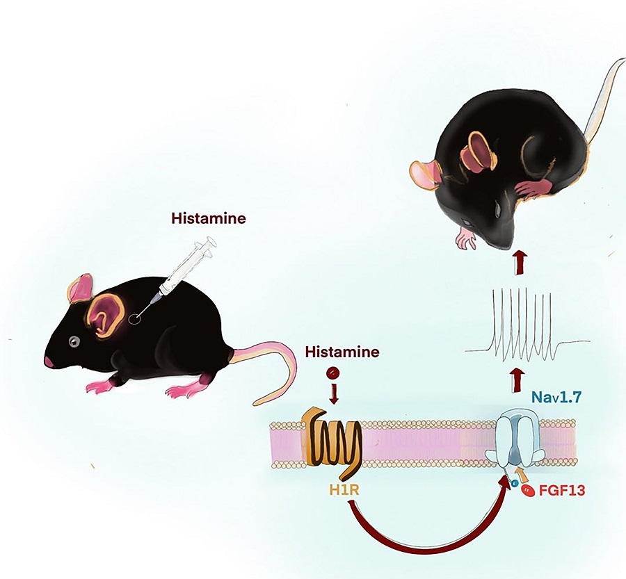 Furthermore, the researchers found that the overexpression of histamine Type 1 receptor H1R, but not H2R, H3R, nor H4R, increased the percentage of histamine-responsive DRG neurons, and the scratching behavior in FGF13-deficient mice was highly reduced by selective activation of H1R, suggesting that H1R is mainly required for FGF13-mediated neuronal response and scratching behavior induced by histamine.