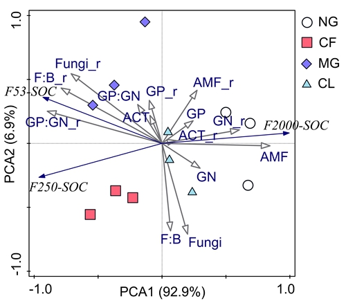 The relationships of aggregate-SOC content with soil microbial community structures in bulk and rhizosphere soils. (Image by ZHAO Rudong)