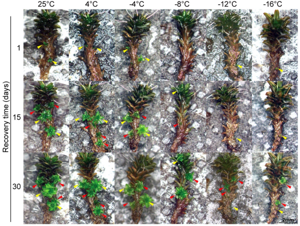 Recovery time of Syntrichia caninervis under different low-temperature treatments (Image by XIEG)