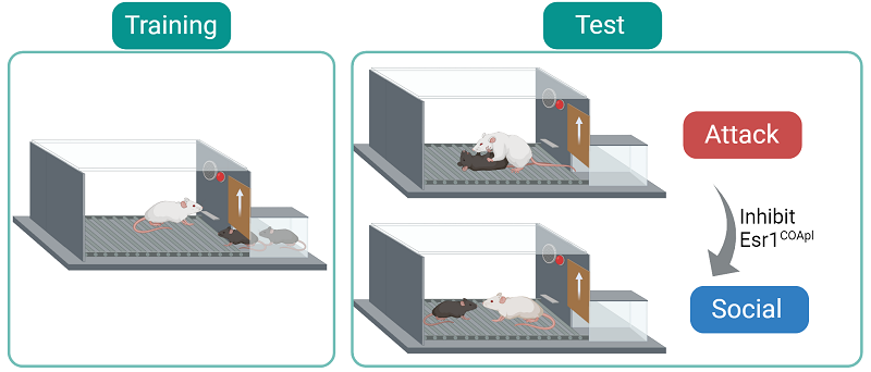 A new study published on February 12 in Nature provides new insights into the neural mechanisms governing aggression. The study, a collaboration between the Institute of Biophysics of the Chinese Academy of Sciences, and the Icahn School of Medicine at Mount Sinai, uncovers how estrogen receptor alpha (Esr1) neurons in the cortical region of the amygdala (COApl) play a critical role in regulating the transition between aggressive and pro-social behaviors in male mice.