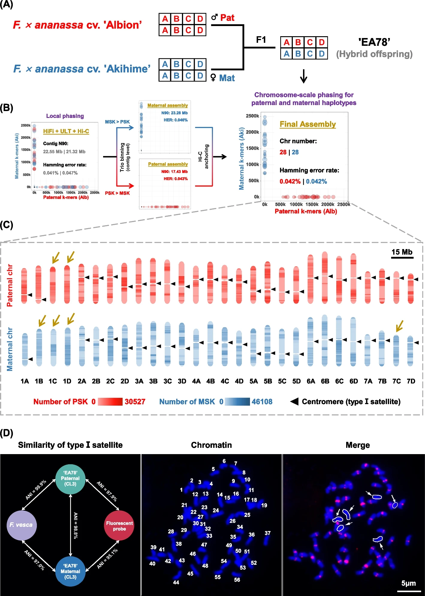 In a study published in Genome Biology, a research team led by Prof. ZHU Andan from the Kunming Institute of Botany (KIB) of the Chinese Academy of Sciences examined centromere divergence and evolutionary patterns in octoploid strawberries. They achieved this by generating a strawberry CENH3-specific antibody and employing advanced genome assembly techniques.