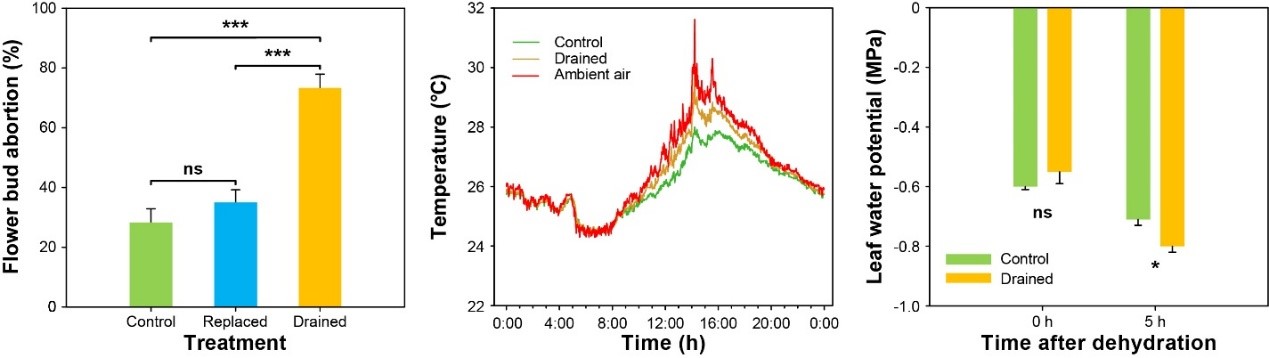 Effects of fluid in womb-like bracts on flower development, flower temperature and leaf water potential. (Image by KIB)