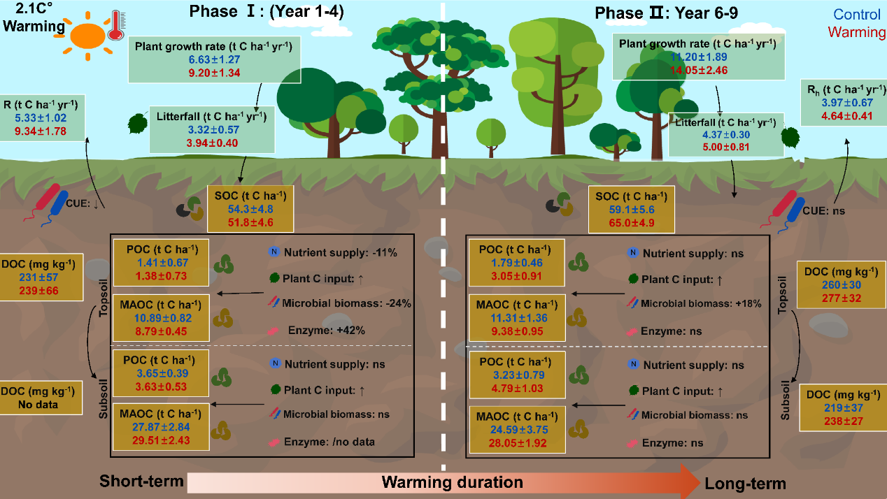 "Our results show that moderate warming does not necessarily lead to soil carbon loss," said Dr. LIU Xujun, first author of the study. "Sustained plant carbon inputs and microbial thermal adjustments can help maintain—or even enhance—soil carbon storage in some humid subtropical forests."