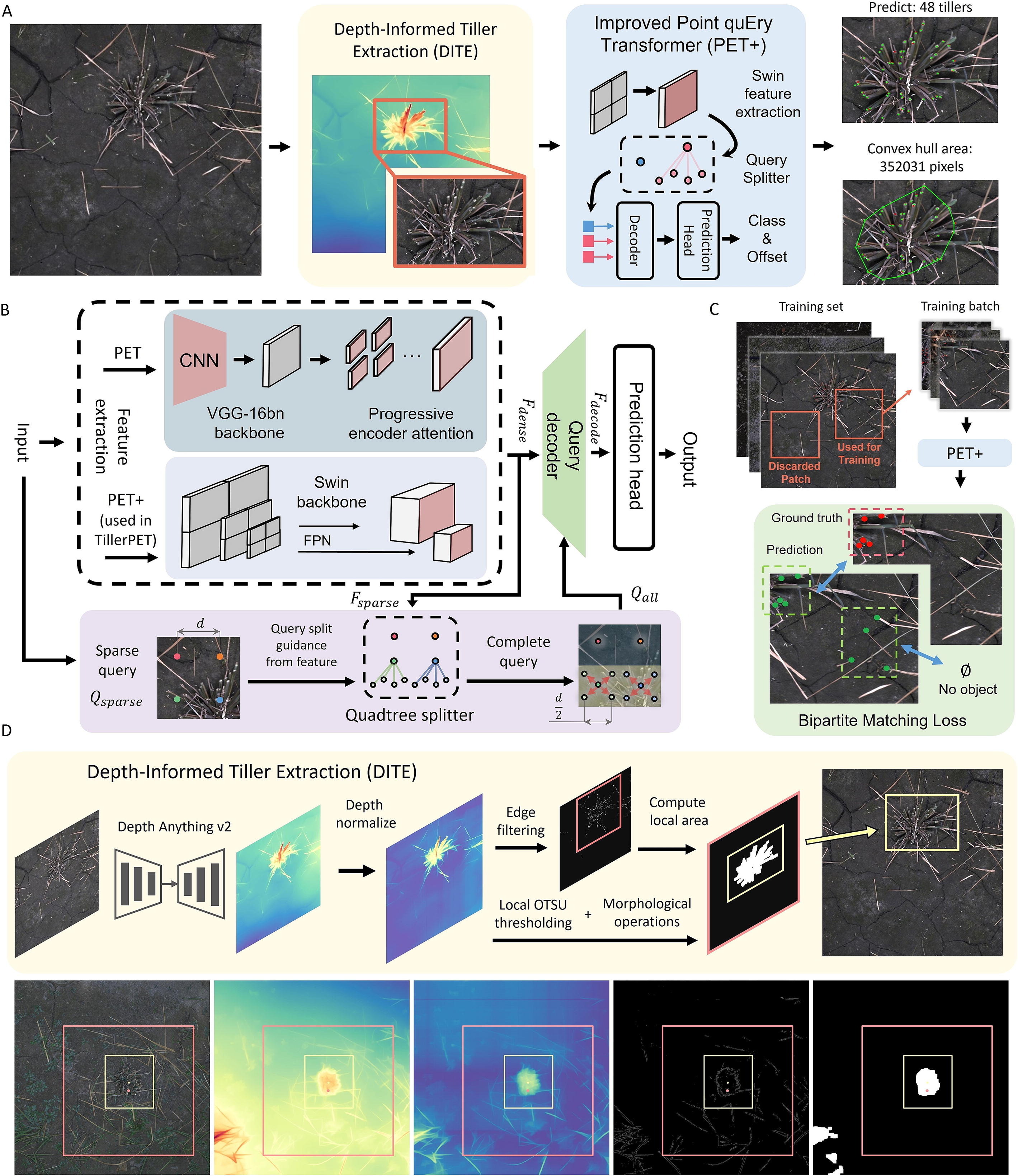 To address these issues, the researchers used a multi-year, multi-location rice RGB image dataset to develop the TillerPET, which adopts a point-query-based transformer architecture and incorporates a depth-aware rice region extraction module to build a lightweight feature extractor.