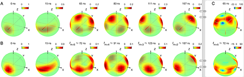 Fig.1. Time evolution of the multiqubit state by numerical simulation and experiment. The Schrödinger cat states in different forms including the GHZ state are created at specific time intervals. (Image by Science)