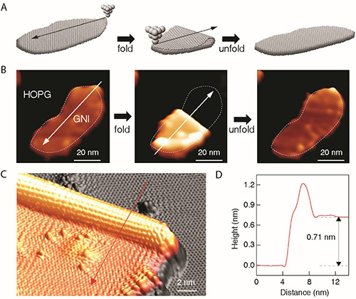 Fig. 1 Construction of atomically well-defined folded GNSs by STM origami. (Image by Institute of Physics)