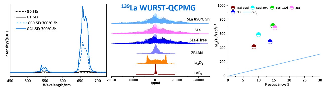 In the experiment, using multiple solid-state nuclear magnetic resonance (SSNMR) techniques and luminescent spectra, they first reported how the local structures of oxyfluoride glasses were reorganized at the atomic level during the crystallization of fluorides.
