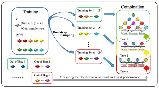 In this study, the researchers used various feature information including the Raman frequency and intensity of MoS2. They used the bootstrap sampling process to obtain sub-training sets containing different spatial location information, and established a random forest model composed of the certain number of decisions through the learning procedure.