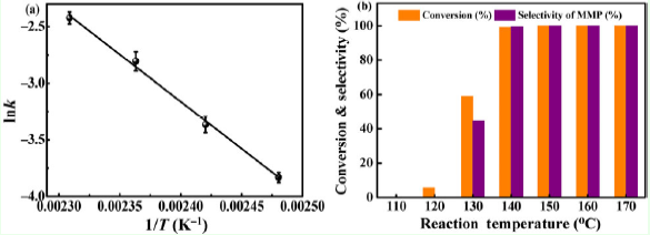 At first, the team used silica spheres as precursors to synthesize a sea urchin-like Cu0/Cu doped SiO2 catalyst, and due to the SMSI effect between Cu and SiO2 support, Cu exists in the form of sub-nano clusters and single atoms on SiO2 surface. The catalyst showed excellent activity in the transfer hydrogenation of vanillin to 2-methoxy-4-methylphenol (MMP). The complete conversion of vanillin and 100% yield of MMP were reached under the condition of 140 ℃, and isopropanol was used as the reaction solvent and hydrogen source.