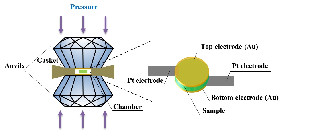 Schematic diagram of the high-pressure charge transport experimental. (Image by PAN Xiaomei)