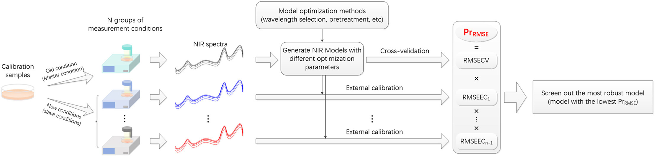 Near-infrared spectroscopy, as a highly promising non-destructive analytical method, relies heavily on the development level of its calibration models for prediction effectiveness. However, variations in measurement conditions often cause substantial prediction deviations. Consequently, mature NIRS models require strong robustness against environmental interference.