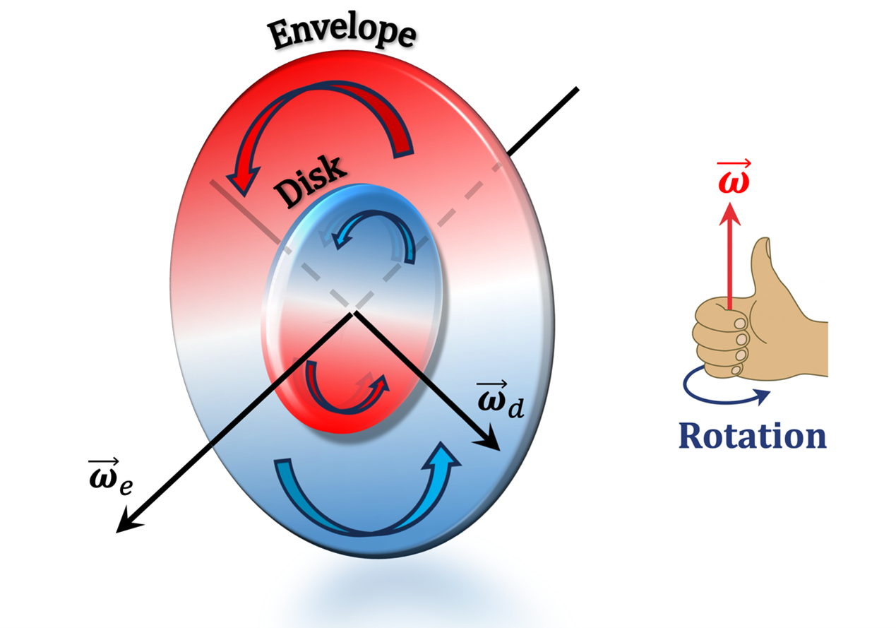 Schematic illustration of the "opposite tilt orientation" between the gas envelope and the protostellar disk. (Image by SHAO)